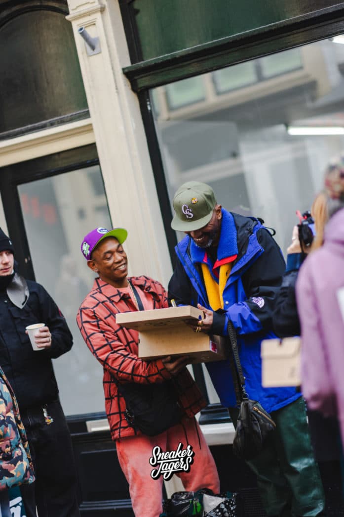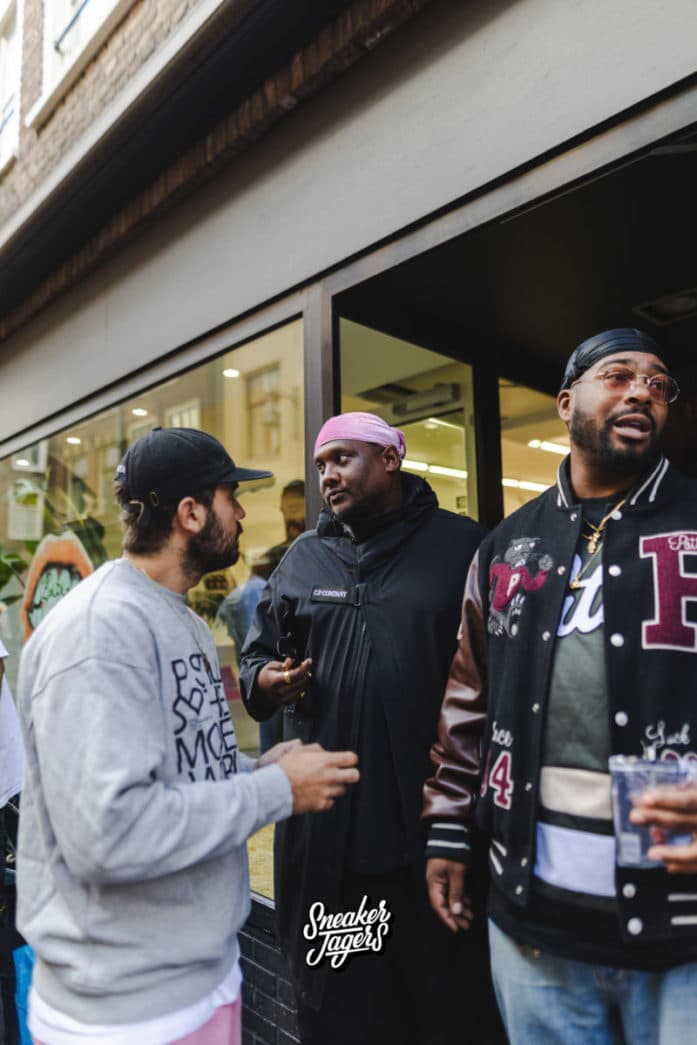 Om 11:00 uur stipt gingen de deuren van de winkel open. Patta-oprichters Edson Sabajo en Guillaume ‘Gee’ Schmidt waren ook aanwezig bij de release, evenals Tim Sabajo. In kleine groepen werden de eersten naar binnengelaten om hun sneaker te bemachtigen, samen met merch en een bijpassende Patta-totebag.
