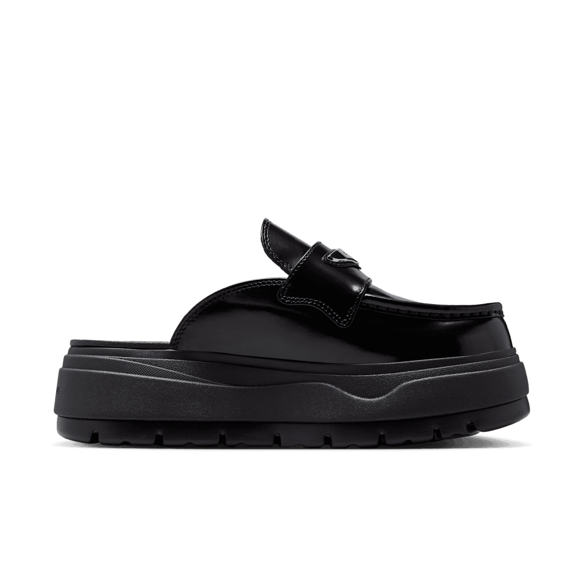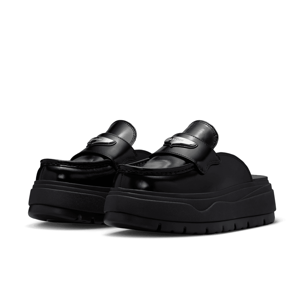 De sneaker, of eigenlijk loafer, heeft een opengewerkte achterkant en een gesp- en banddetail over de voorvoet. Wat het model extra bijzonder maakt, is de multi-layer platformzool die zorgt voor demping en comfort. Eén van de weinige verwijzingen naar de Air Jordan-klassieker zit hem in het zoolpatroon, dat is geïnspireerd op het iconische profiel van de Air Jordan 1.