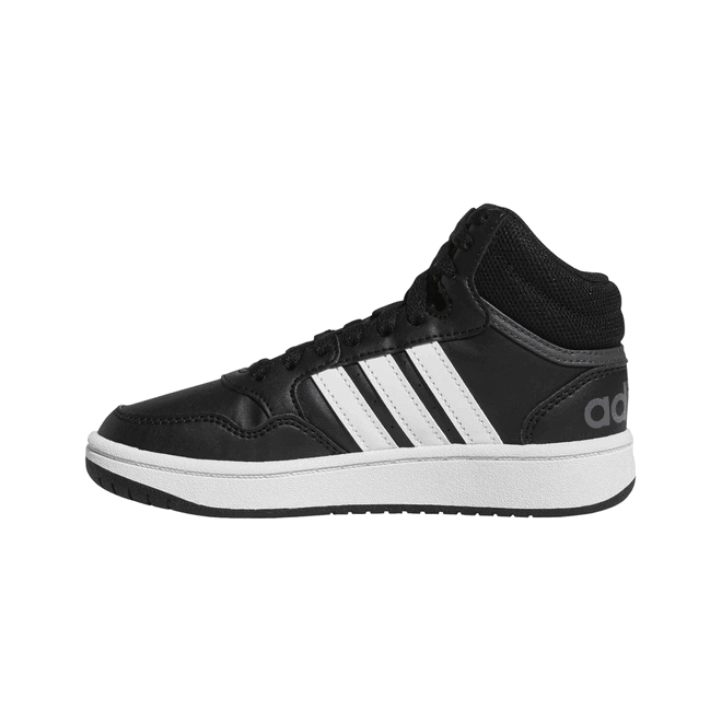 De nieuwste versie, de Hoops 4.0 Mid, heeft een strak leren bovenwerk met het kenmerkende 3-Stripes-logo en biedt een tijdloze esthetiek die naadloos overgaat van het basketbalveld naar de straat.