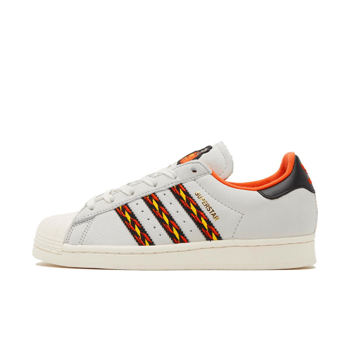 Superstars hebben een bovenwerk van leer voor een eersteklas gevoel. De buitenzool heeft een visgraatprofiel voor uitstekende tractie en grip op verschillende ondergronden. Een gouden Trefoil-logo op de tong en hiel voegt een elegante touch toe.