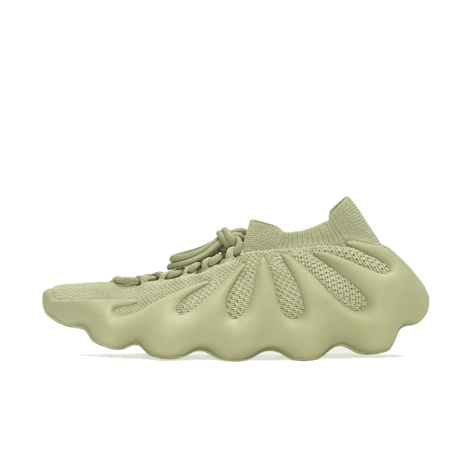 In tegenstelling tot de minimalistische esthetiek van eerdere modellen, is de 450 direct herkenbaar aan de gesculpteerde, klauwachtige EVA-foamzool die de Primeknit-bovenkant omsluit, wat een futuristisch, bijna buitenaards uiterlijk creëert. Dit gedurfde ontwerp is niet alleen voor de show; de schoen biedt ook een lichtgewicht, sokachtige pasvorm met responsieve demping en flexibiliteit, waardoor hij net zo functioneel als visueel opvallend is.
