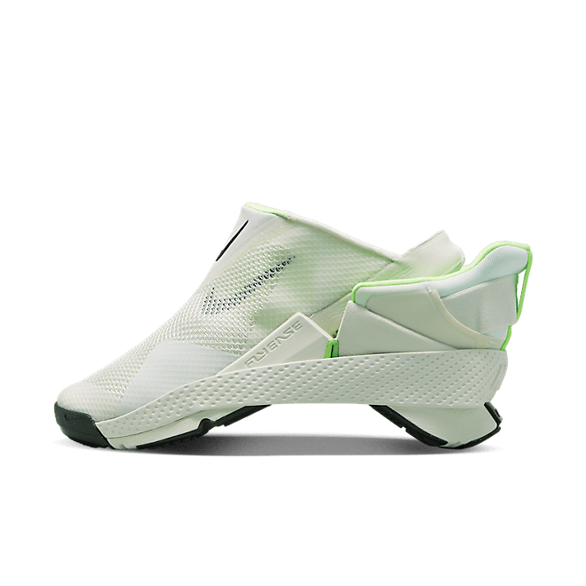 De Go FlyEase is Nike’s eerste volledig handsfree sneaker, met een innovatieve bi-stabiele scharnier- en spanningsmechanisme dat de schoen veilig open of dicht laat staan zonder veters of riemen. Dit ontwerp maakt het mogelijk om moeiteloos in de schoen te stappen en een goede pasvorm te krijgen zonder de handen te gebruiken.
