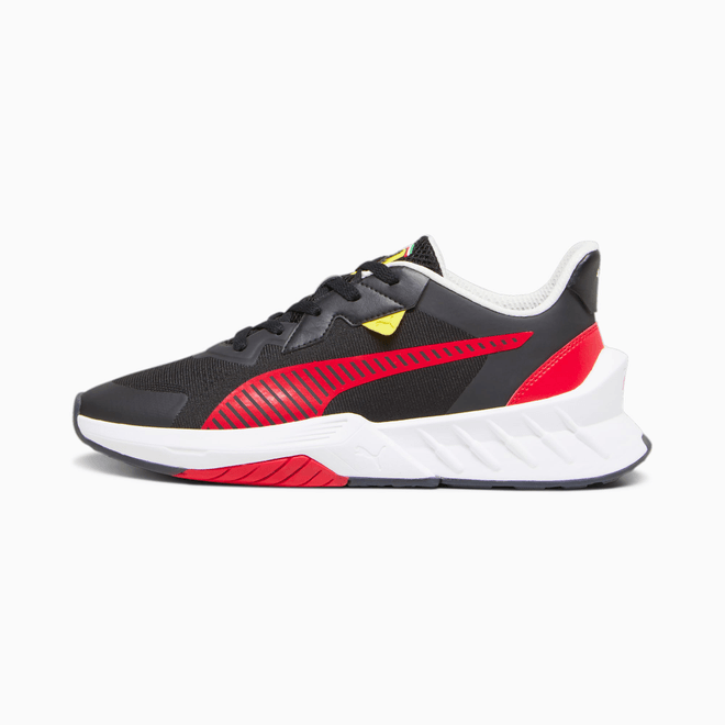 Door het vakmanschap van PUMA te combineren met het iconische design van Ferrari, combineert de Ferrari schoenencollectie het beste van twee werelden. Ferrari’s luxe sportwagens, met hun strakke design en minutieuze aandacht voor detail, vormden de inspiratie voor de collectie. Deze schoenen belichamen snelheid en luxe door Ferrari’s kenmerkende kleuren en merkelementen, waaronder het herkenbare steigerende paardenlogo.